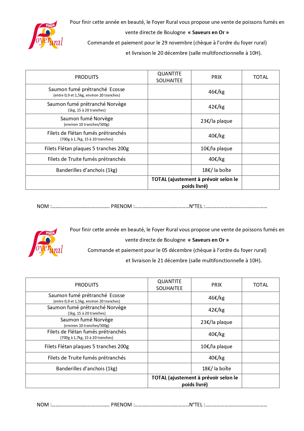 - Le Foyer Rural propose une vente de paniers du marché rural