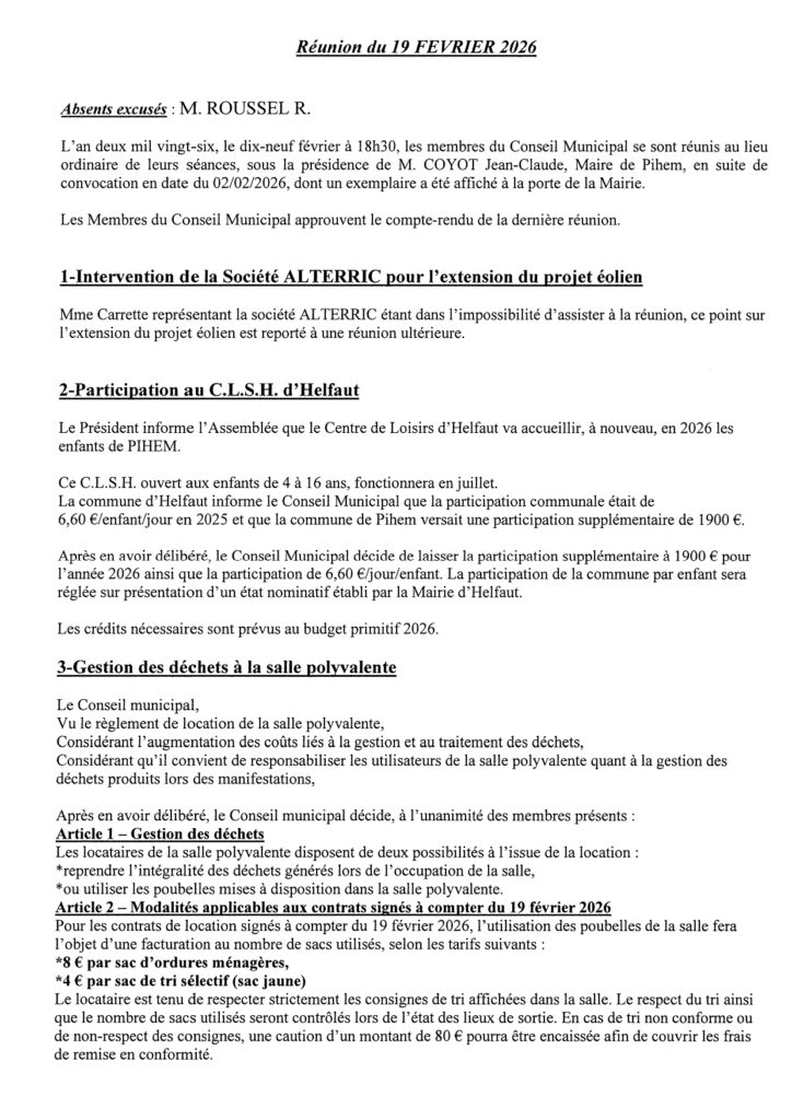 - Convocations et comptes rendus des réunions de Conseil Municipal