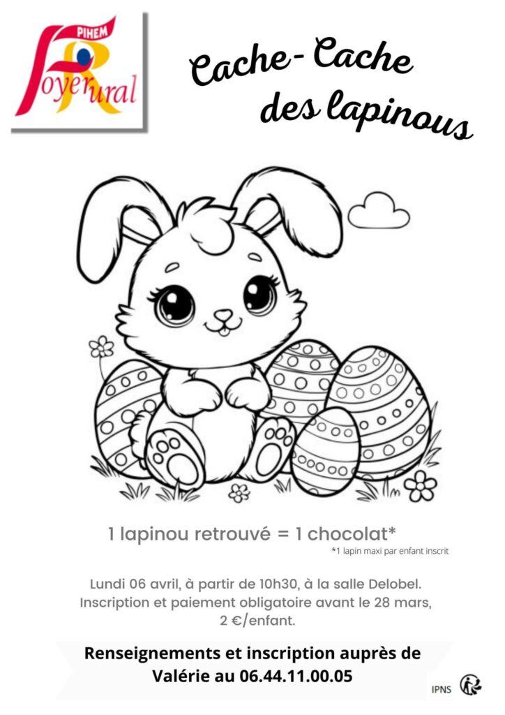 Lundi 6 avril Cache-cache des lapinous organisé par le Foyer Rural